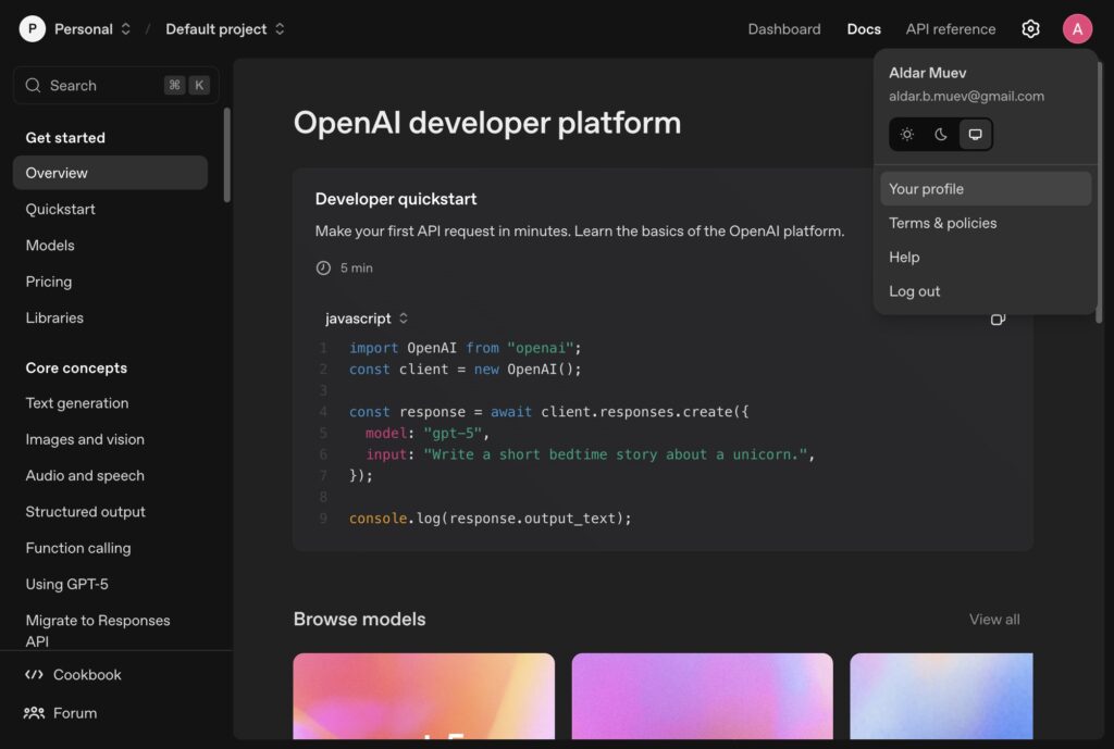 1. Go to the OpenAI platform:platform.openai.comand Log in: Click Log in and choose Continue with Google (or your preferred method).