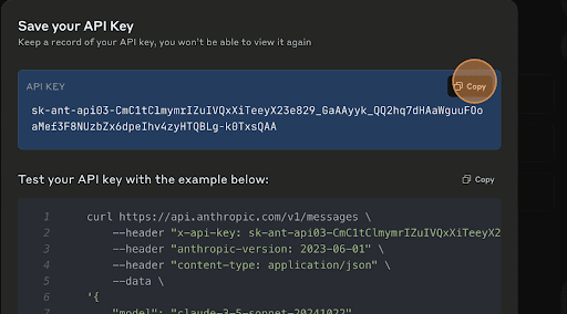 Click “Copy”. Important to save it somewhere safe because you won’t be able to access it again